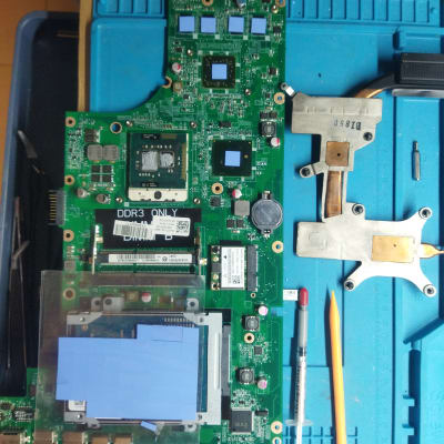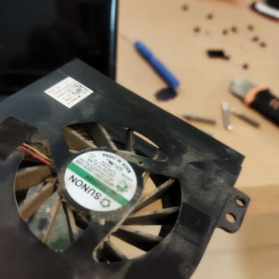 ניקוי מחשב נייד של חברת דל והחלפת סוללה פנימית.