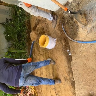 פירוק דק ישן וריצוף מחדש כולל עבודות חשמל ואינסטלציה בגינה.