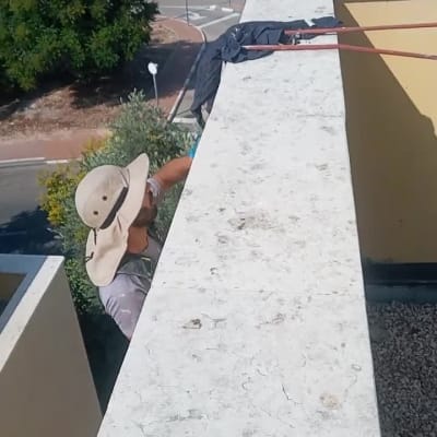 איטום של גג שטוח עם חומר לבן באמצעות סנפלינג.