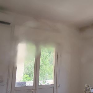 תיקון תקרה לאחר נזקי רטיבות - טיח וצבע.