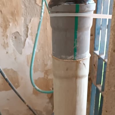 החלפת חלק שנשבר במרזב חיצוני שנזל.