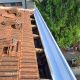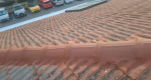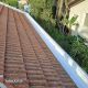 ניקיון כללי של הגג וכל תעלות הפח מעלים ולכלוך. טיפול בתעלות צד: הסרת חלודה רופפת עם מברשת פלדה מכנית וצביעת המרייט נגד חלודה בשתי שכבות. הסרת חלודה, תיקון ואיטום תעלות הפח הראשיות וציפוי בחומר על בסיס סיליקוני עמיד לאורך זמן בשתי שכבות. שטיפת הרוכבים בלחץ מים גבוה, תיקון סדקים וחלקים רופפים במסטיק פוליאוריטני וציפוי מלא בחומר אקרילי ייעודי לגגות בגוון טרה קוטה בשתי שכבות.