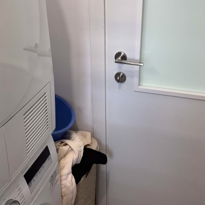 התקנת דלת חדר פנים לחדר האמבטיה מפולימור נעילה שקטה.