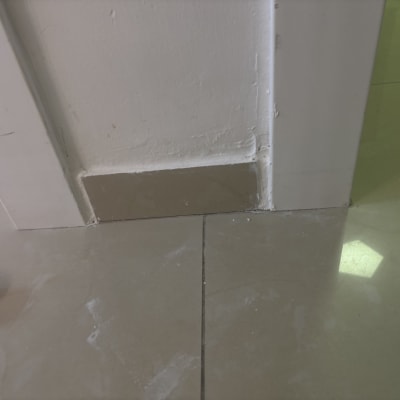 הורדת אריחים ישנים והדבקת שישה אריחים חדשים על הקיר, כולל חומרי מילוי והדבקה.