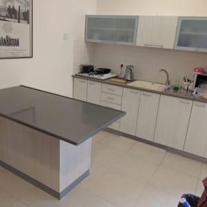 בניית אי למטבח ארונות מפורמייקה ומשטח שיש.