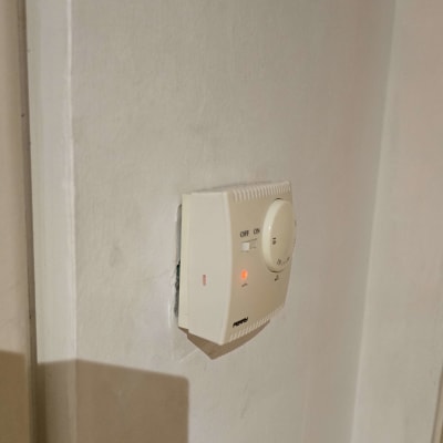 החלפת שלושה תרמוסטטים וסידור לוח חשמל של חימום תת-רצפתי.