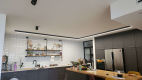 פירוק פס צבירה והתקנת פס תאורה צמוד תקרה. שני גופי התאורה בגודל 3.5 על 3.5 מטר.