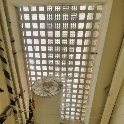 התקנת רשת להרחקת יונים במסתור כביסה.