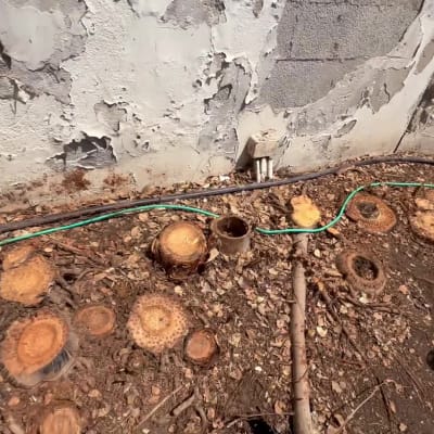 כרסום שורשים של כ-20 עצים מסוג ציפור גן עדן ושישה גדמי דקל פיקוס.