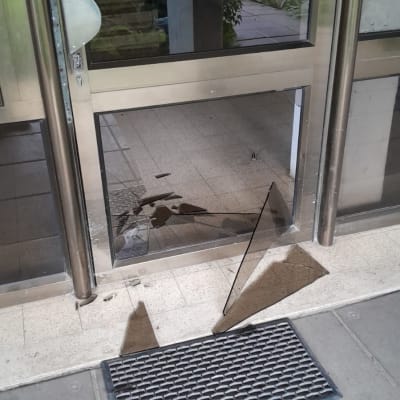 החלפת חלון שהתנפץ בכניסה הראשית לבניין ברחובות.