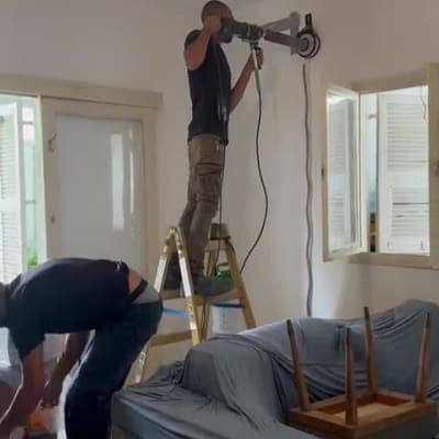 התקנת מזגן עם קידוח בקיר בטון.