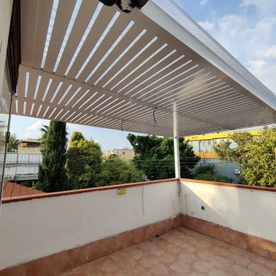 בניית פרגולות אלומיניום בגודל 13 מ"ר בחצר ביתית.