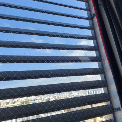 התקנת רשת להרחקת יונים במסתור כביסה כולל ניקוי וחיטוי.