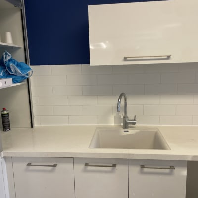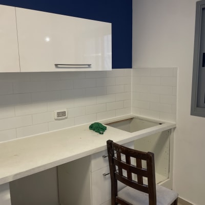 הדבקה של אריחים במטבח.