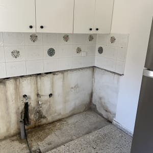 פירוק ופינוי לרחוב של מטבח עם שיש, התקנה חדשה של ברז פרח וסיפון אמריקאי.