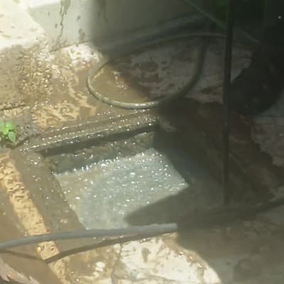 פתיחת סתימה בקו ביוב חיצוני בחצר.