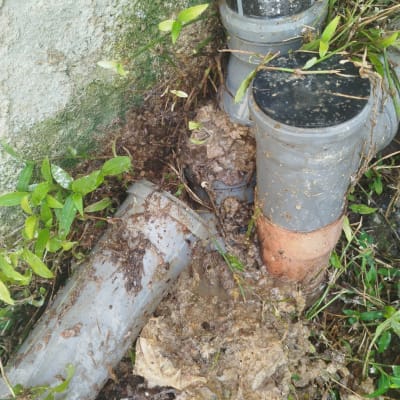 פתיחת סתימה בצנרת ביוב מחוץ לבית.