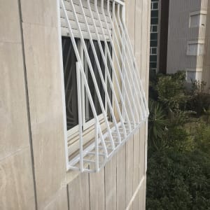 התקנת סורג לבן לחלון בגודל 1.2 מטר על 1.5 מטר.