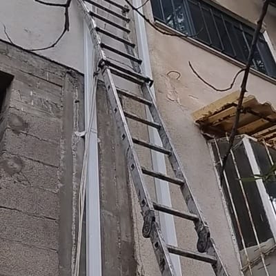 התקנת 3 מרזבים חיצוניים שכלל שימוש בסולם.