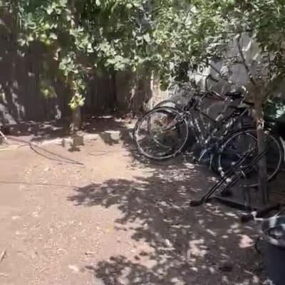 ניקיון חצר של 100 מר בדרום תל אביב, כולל גיזום עקירה ואיסוף.