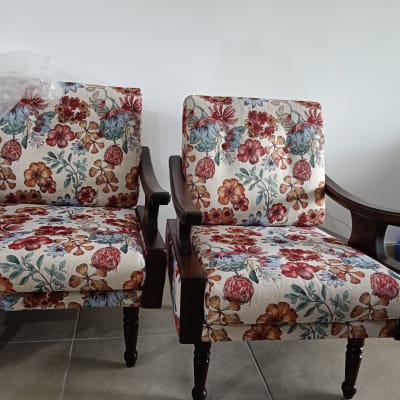 ריפוד שתי כורסאות ישנות מאוד בבד.