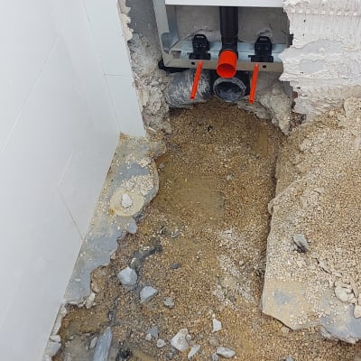 איתור נזילה ברצפה בחדר אמבטיה.
